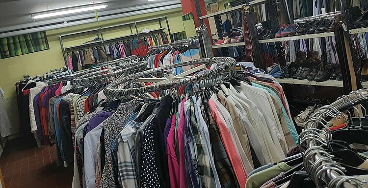 Neben guterhaltenen Kleidern, Hosen, Jacken und Mänteln, bieten wir auch Schuhe und Stiefel an. Sowie Wäsche für den täglichen Bedarf, Bettzeug und Decken. Die von uns angebotene Ware wird saisonal, d.h. Sommer/ Winterbekleidung, angeboten.