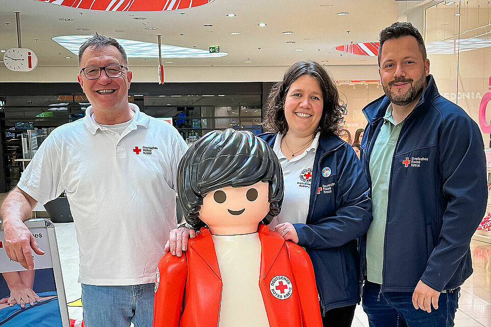 Am landesweiten Aktionstag "Laienreanimation" folgten am Samstag, dem 4. Mai 2024, über 100 Personen dem Aufruf "Drück dich nicht - Drück mich" des DRK-Mittelrhein im Forum Mittelrhein in Koblenz. Dort waren wir mit zwei Stationen präsent, an denen die Reanimation geübt werden konnte. Wir möchten uns bei Jung und Alt für das große Interesse und den schönen Austausch zu diesem wichtigen Thema bedanken.